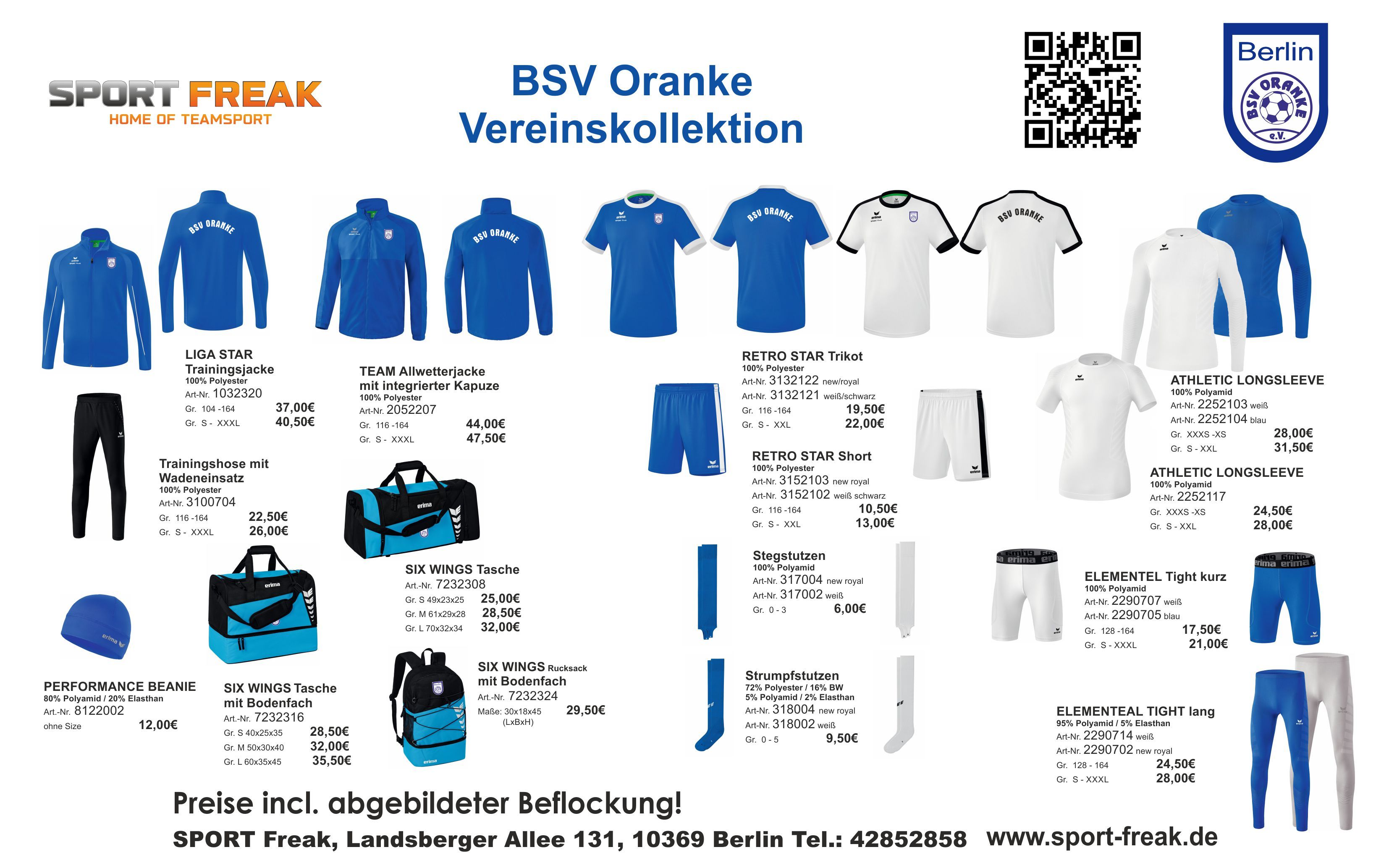 Um im Verein ein einheitliches Erscheinungsbild durchzusetzen, bieten wir Ihnen neben Verträgen mit den Sportartikelfirmen zu guten Einkaufskonditionen auch Hilfe bei der Auswahl einer Vereinskollektion an. Dies hat den Vorteil, dass auch die Eltern umfassend über die Vereinsbekleidung informiert sind und ihre Sprösslinge mit dem entsprechenden Equipment ausstatten können. Wir empfehlen die Artikel vor der Bestellung in unserem Ladengeschäft anzuprobieren. Dafür stellen wir entsprechende Muster zur Verfügung. Bedruckte Artikel sind vom Umtausch ausgeschlossen!