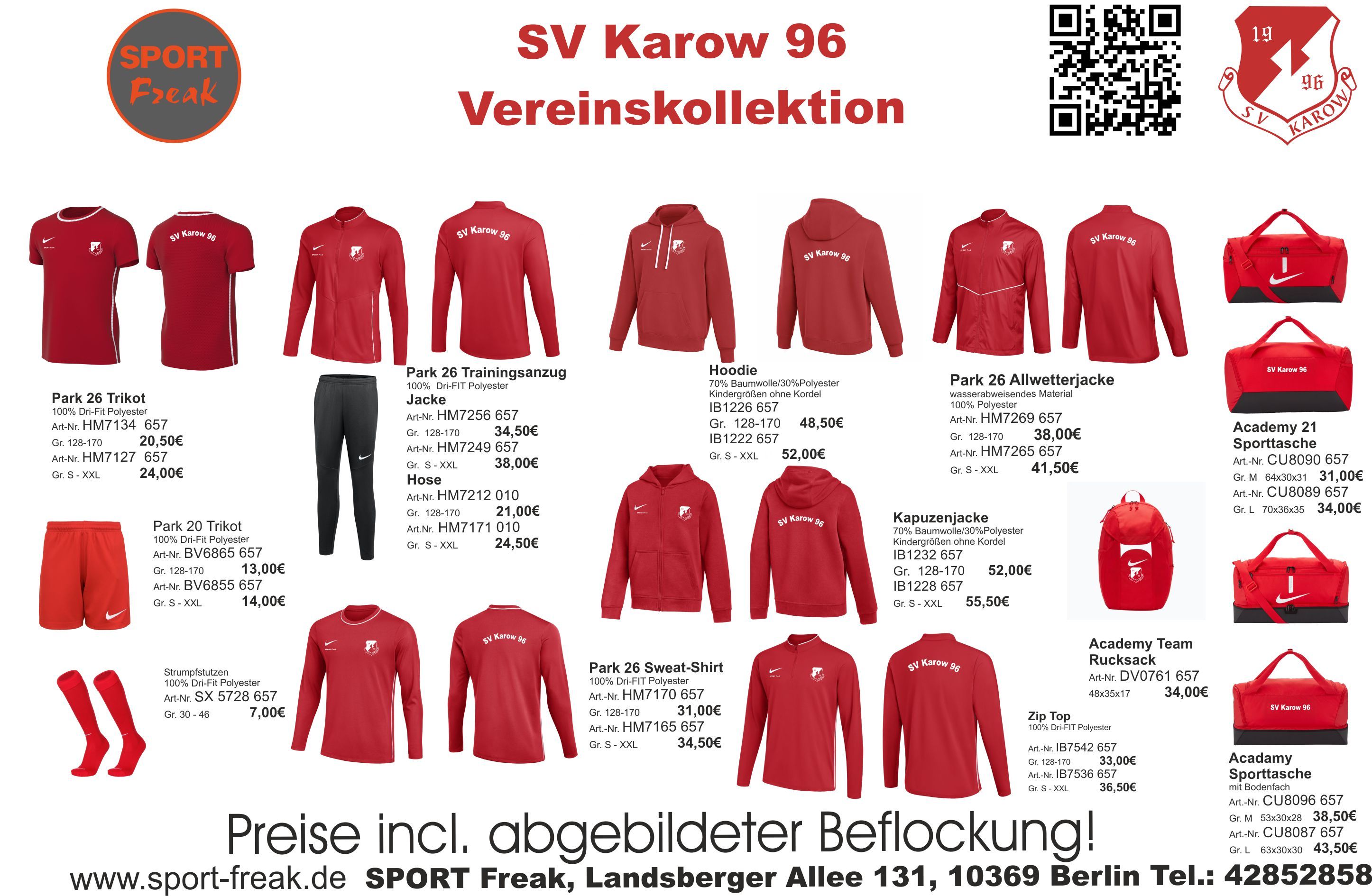 Um im Verein ein einheitliches Erscheinungsbild zu ermöglichen, bieten wir Ihnen neben Verträgen mit den Sportartikelfirmen zu guten Einkaufskonditionen auch Hilfe bei der Auswahl einer Vereinskollektion an. Dies hat den Vorteil, dass auch die Eltern umfassend über die Vereinsbekleidung informiert sind und ihre Sprösslinge mit dem entsprechenden Equipment ausstatten können. Wir empfehlen die Artikel vor der Bestellung in unserem Ladengeschäft anzuprobieren. Dafür stellen wir entsprechende Muster zur Verfügung. Bedruckte Artikel sind vom Umtausch ausgeschlossen!